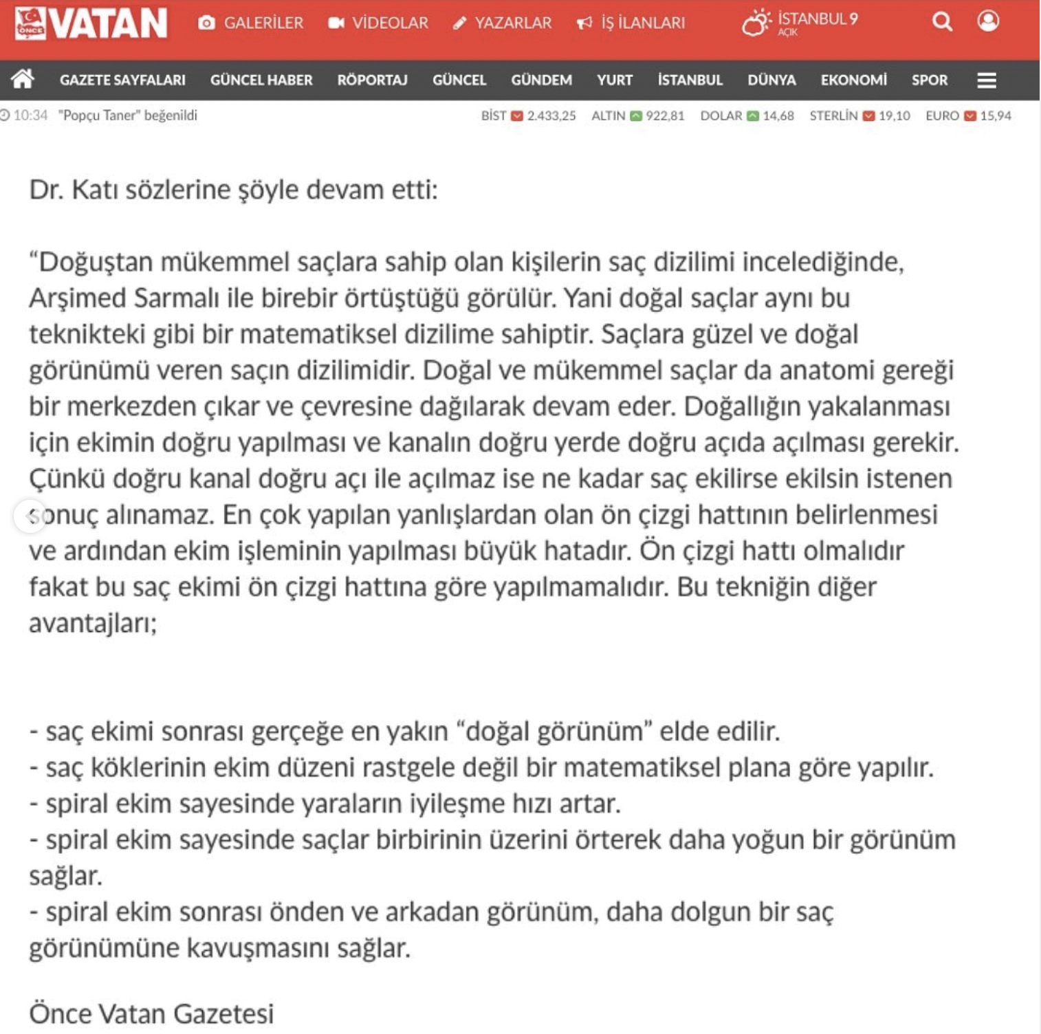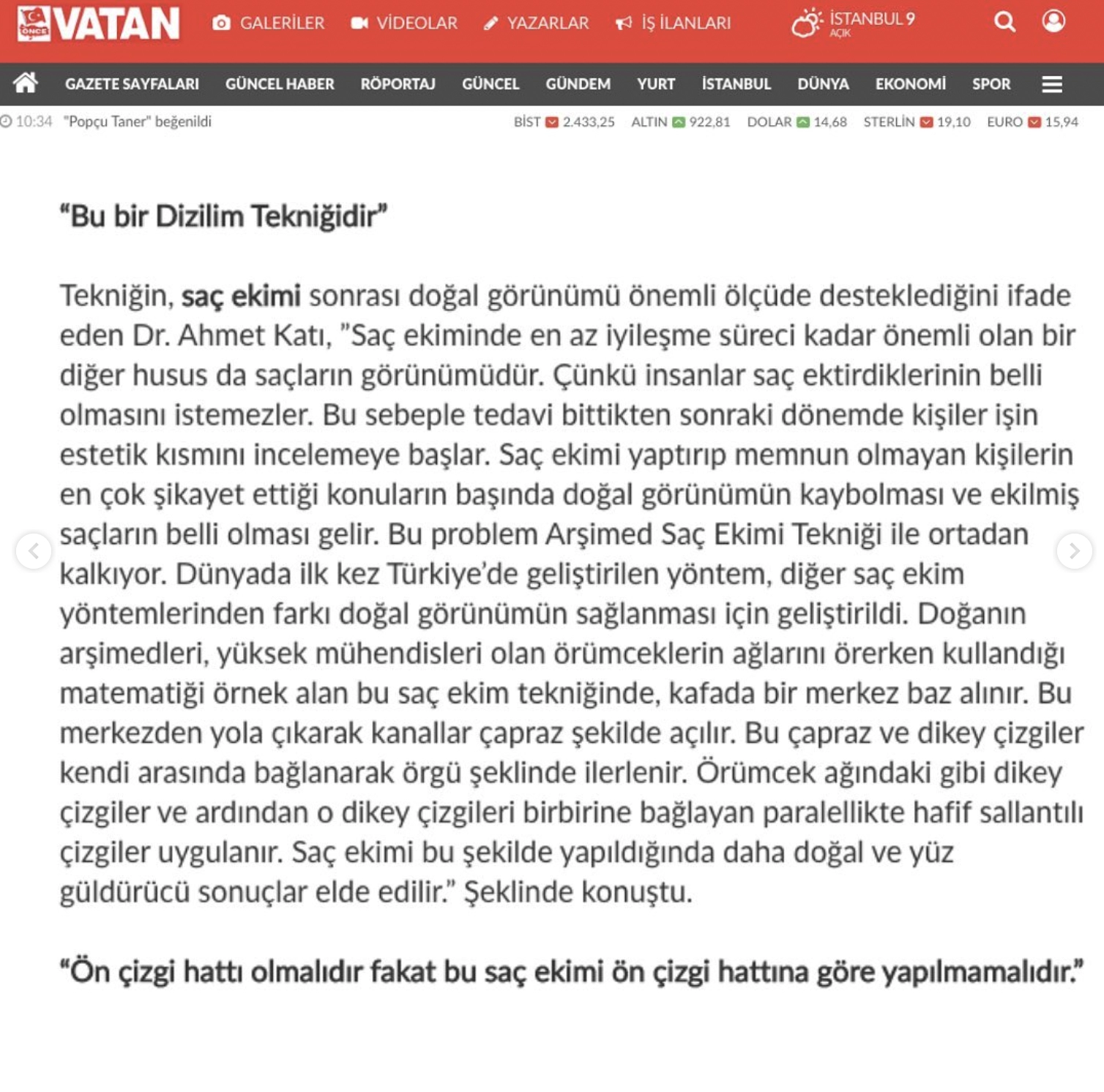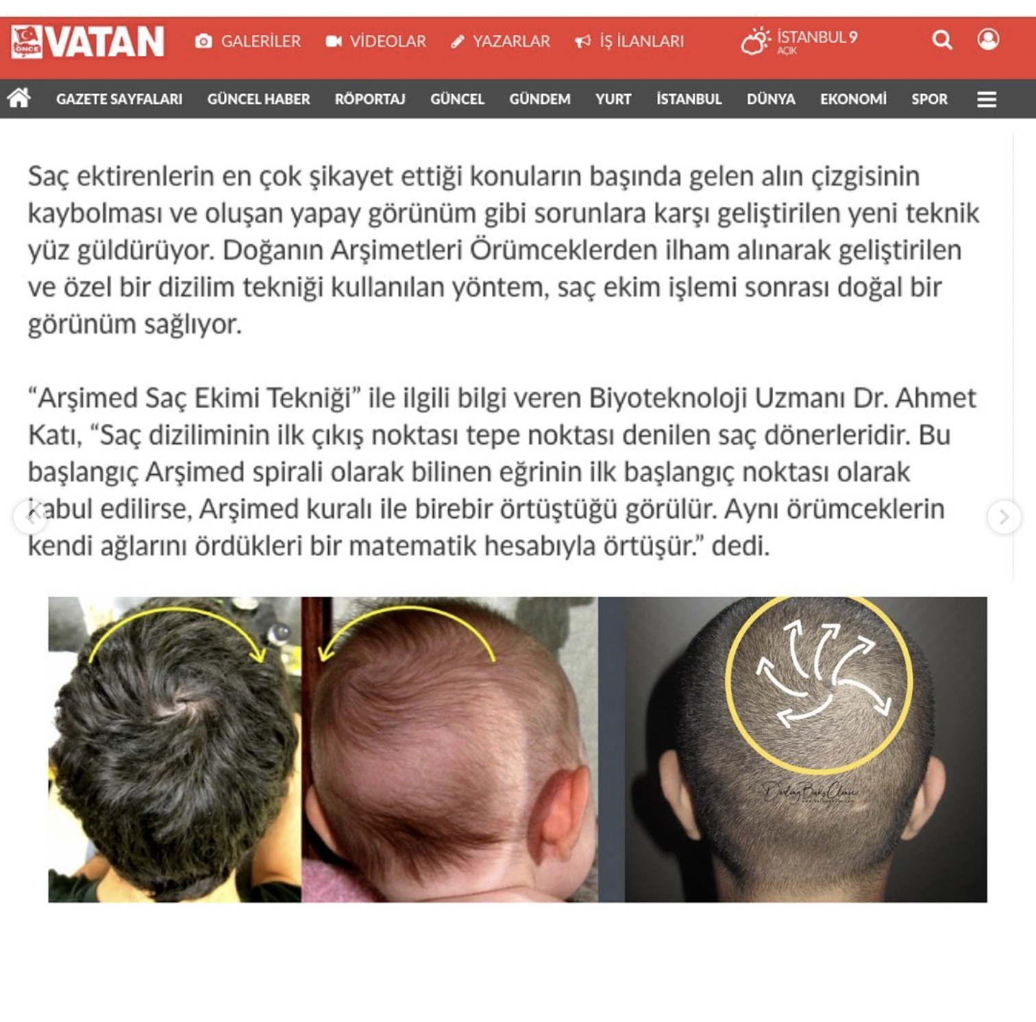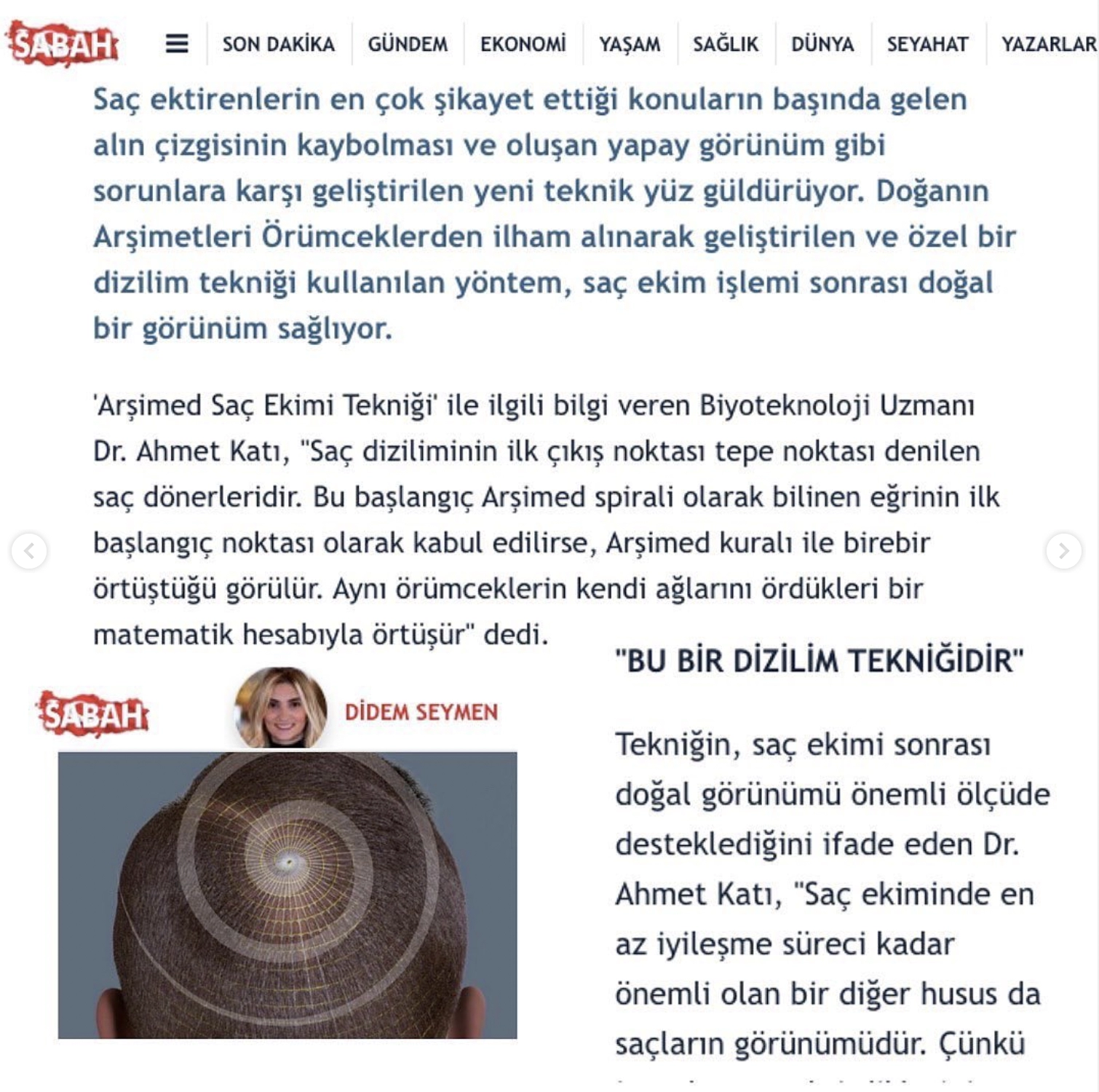 Bir çok televizyon programında hastalarını bilgilendirmeye devam eden Dr. Ahmet Katı, Arşimed Saç Ekim tekniği ile nasıl doğal bir saç ekim görünümüne kavuşacağınızı anlatıyor.